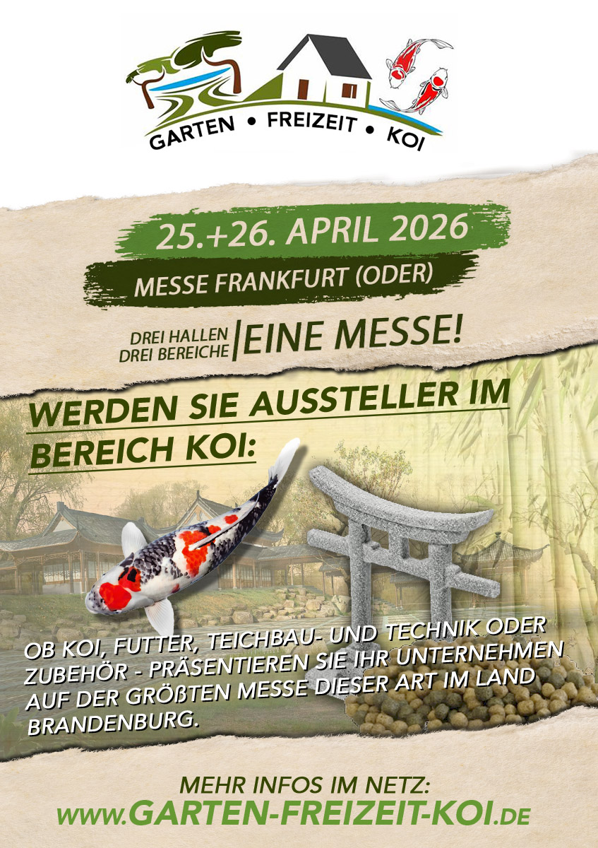Sie möchten selbst als Aussteller auf der Garten-Freizeit-Koi dabei sein? Hier können Sie hier ganz einfach das Anmeldeformular herunterladen.
